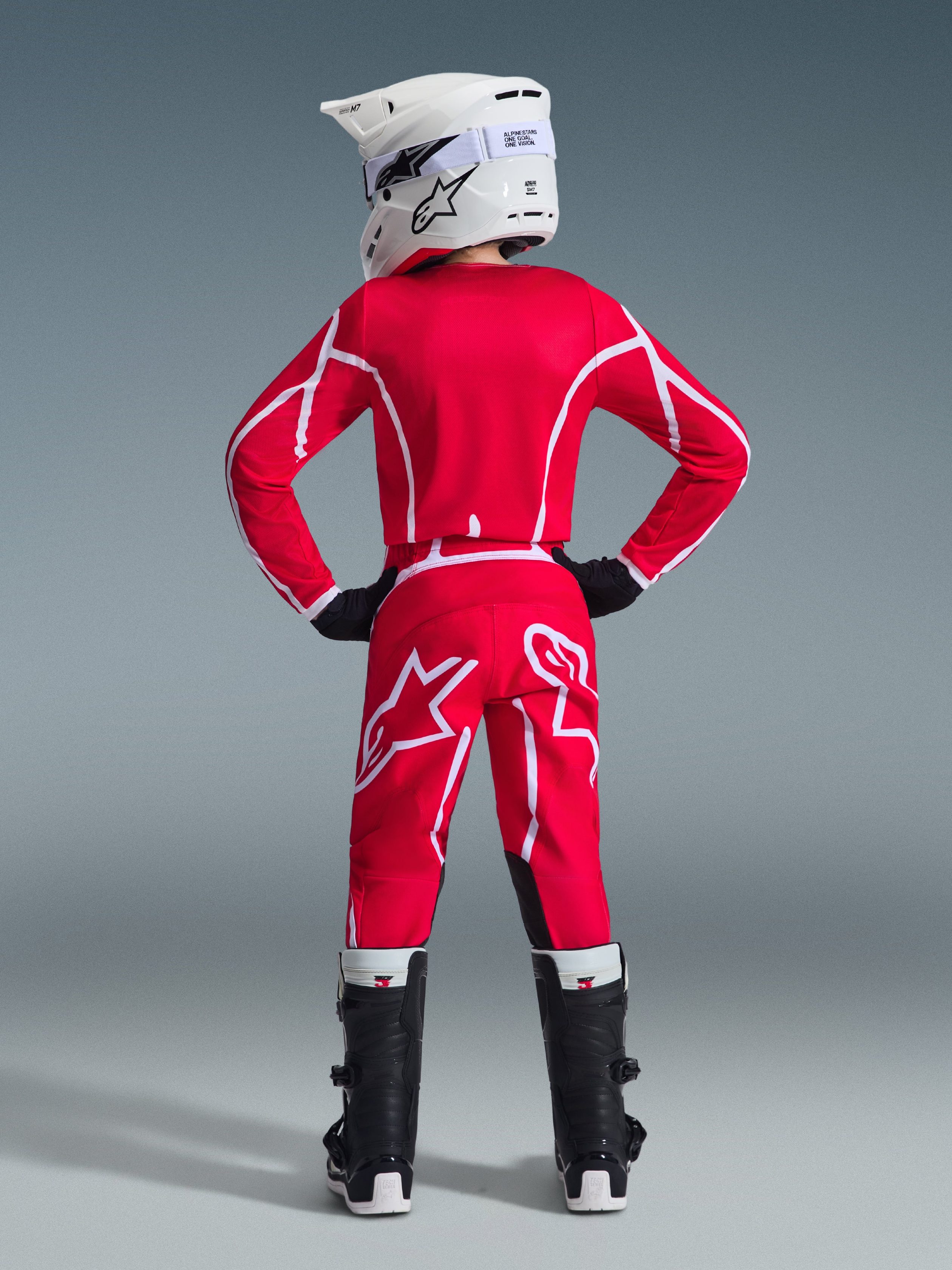 The Youth Fluid line offers recreational MX riders gear with optimal MX technology that leverages the key construction features of the Supertech. Techstar. and Racer lines for a total performance look and feel that is optimized for comfort and riding functionality for young riders. Developed and tested on some of the toughest terrains. the sport-fit Youth Fluid gear is ideal for many forms of off-road riding and provides the most relaxed fit of all the MX26 gear lines. The Youth Fluid line has a more athletic fit including more fitted sleeves and the size range has been expanded to offer sizing for riders ages 5 to 15.