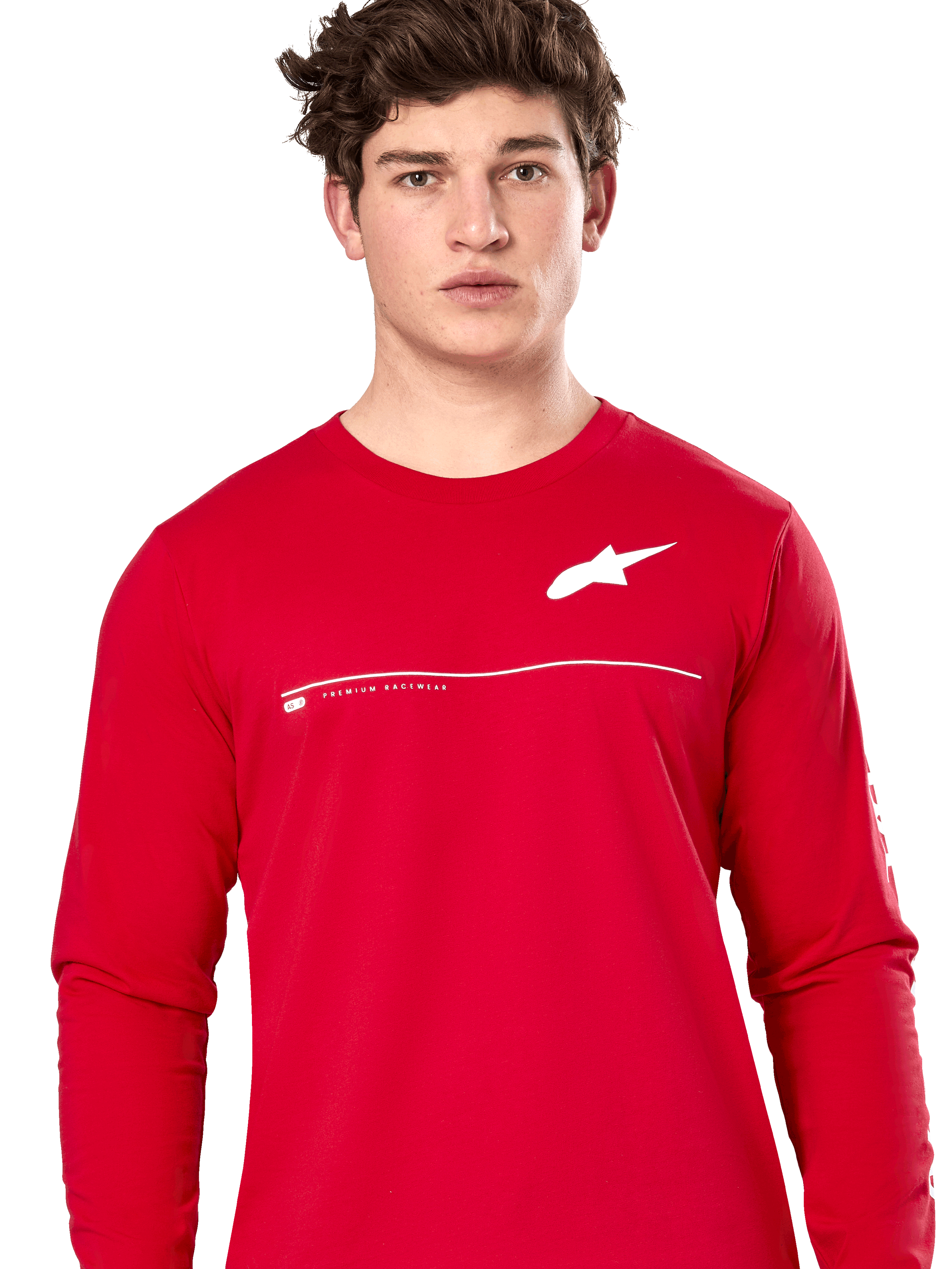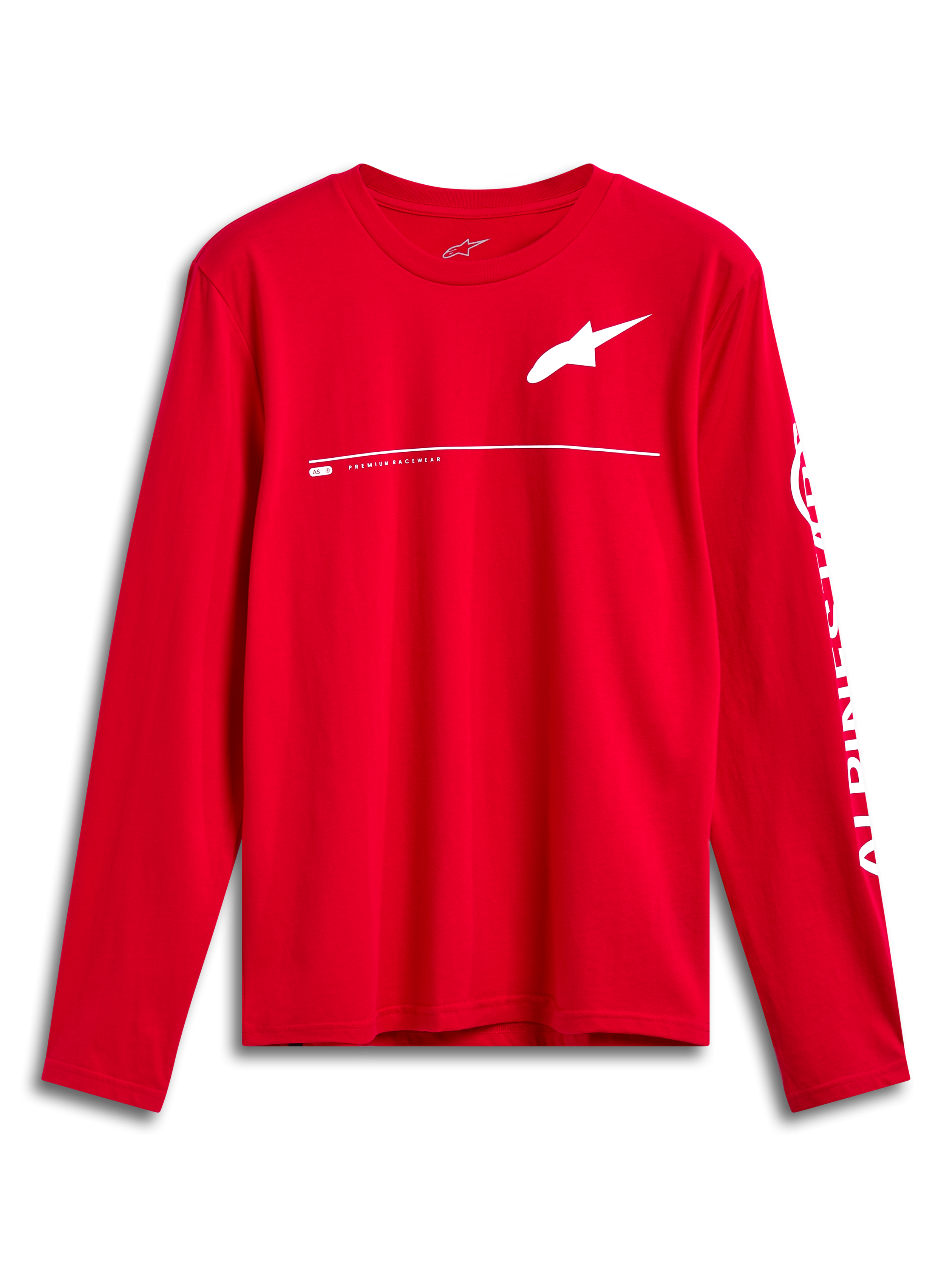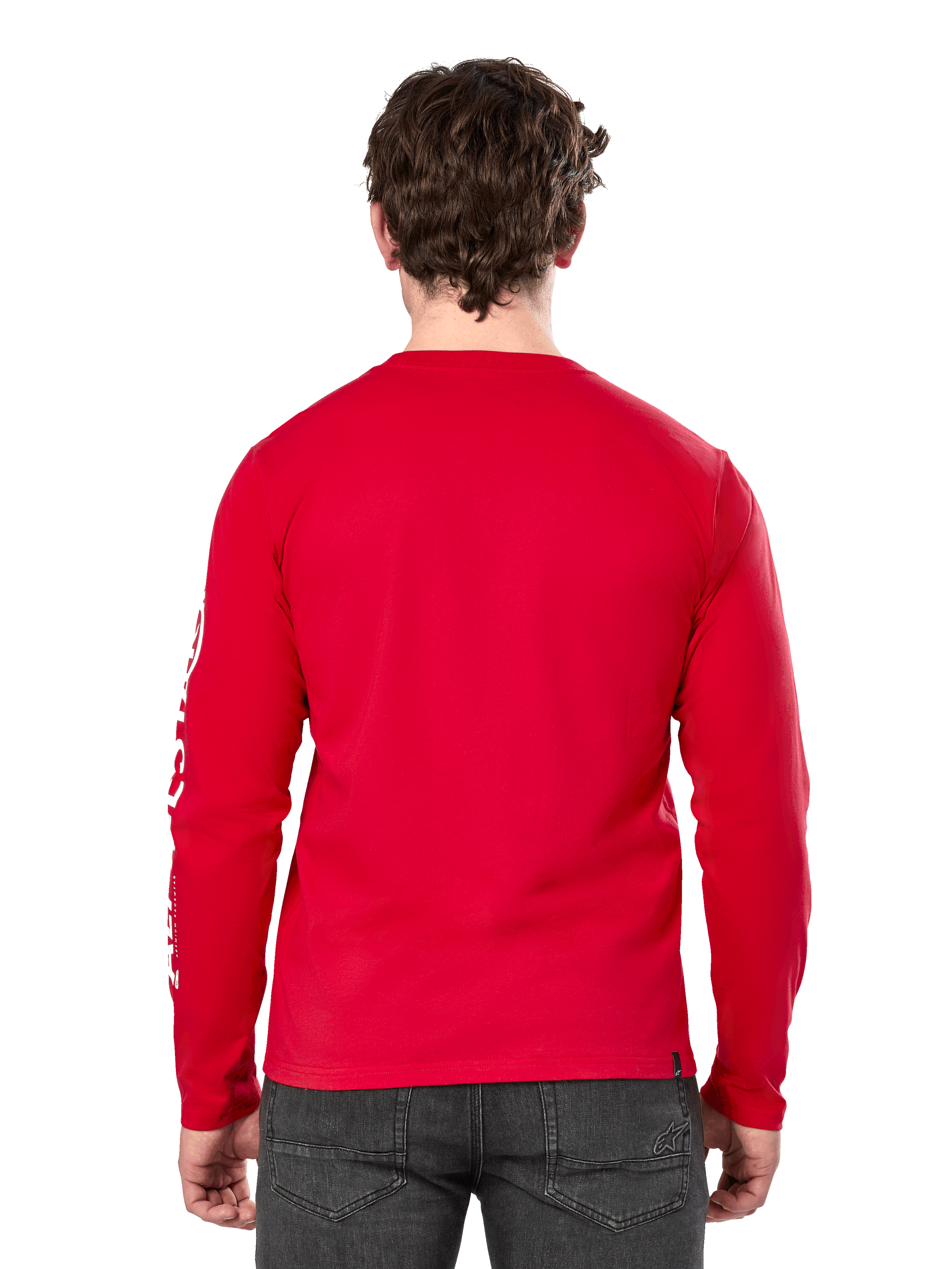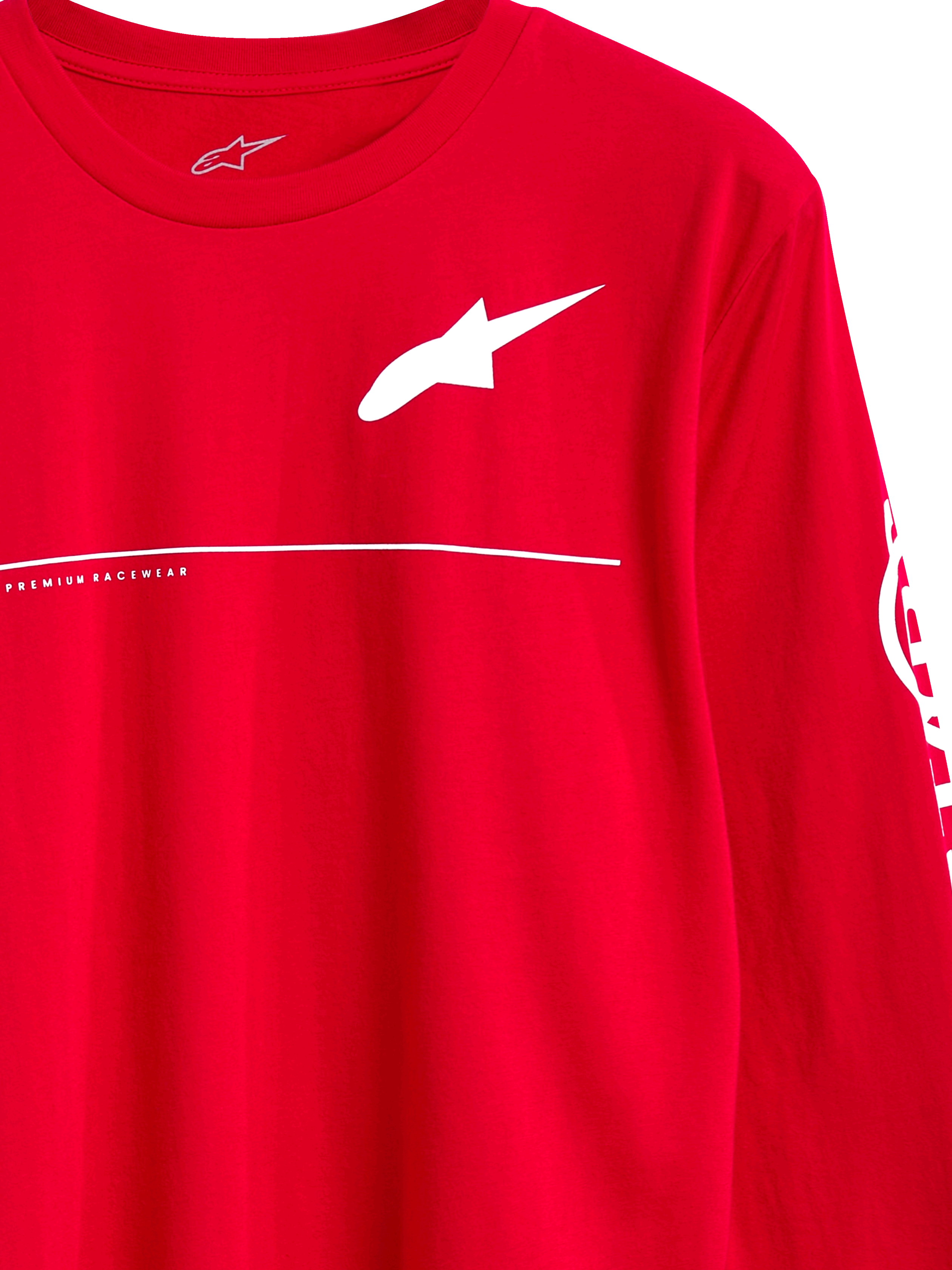 ? PRINTED CSF LONG SLEEVE TEE? Front Astars chest logo with Alpinestars sleeve logo. Soft hand print? Front Astars chest logo with Alpinestars sleeve logo. Soft hand print