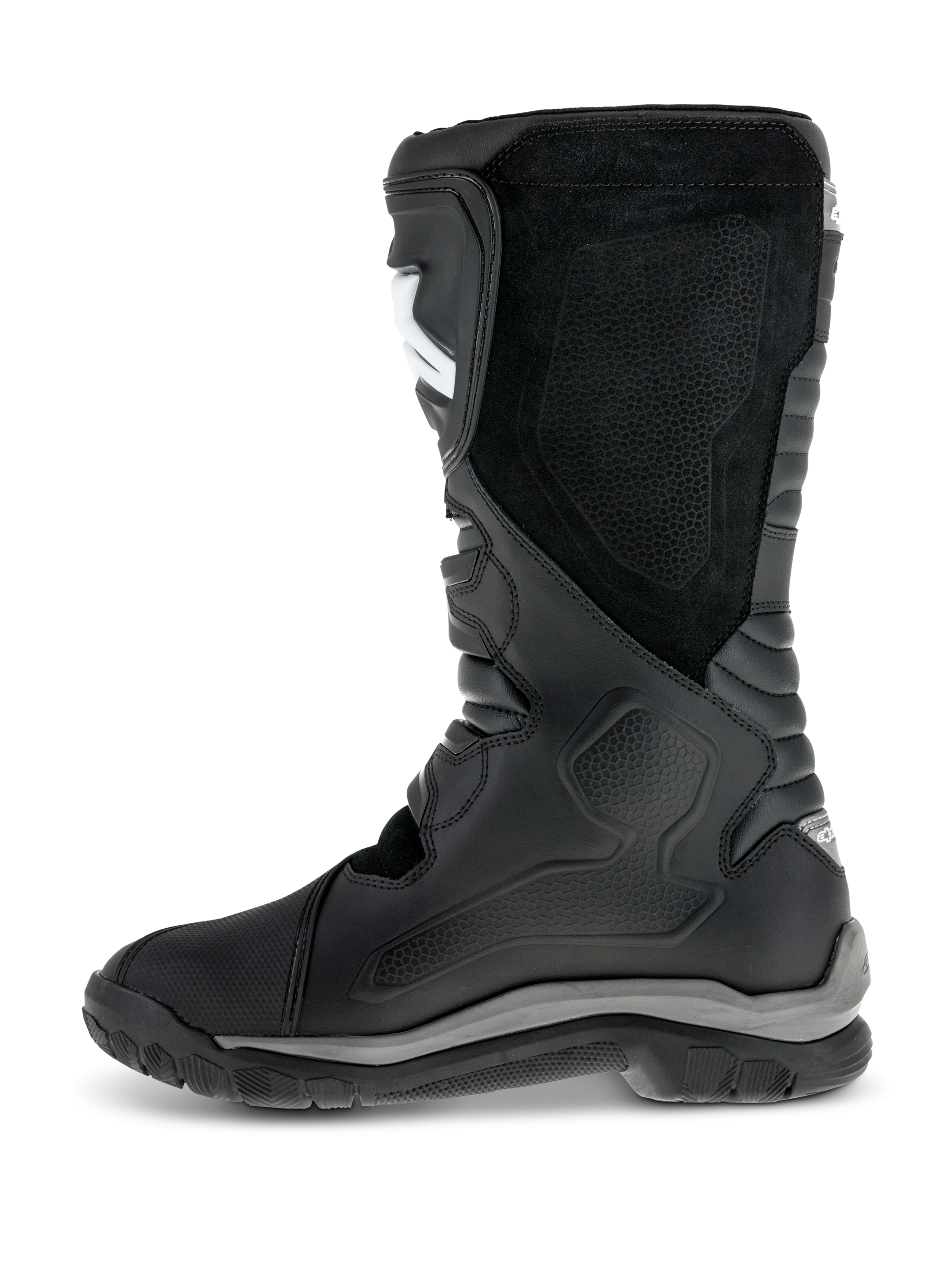 A premium. multi-material adventure touring boot the Corozal is packed with class-leading protective features. such as an advanced polymer shin-plate and innovative lateral ankle protection with supporting biomechanical link between the upper boot and the lower foot structure. Every component on this boot is designed for weight-saving and performance regardless of the weather or terrain. from the integrated Drystar® breathable membrane to its advanced microfiber and suede chassis.