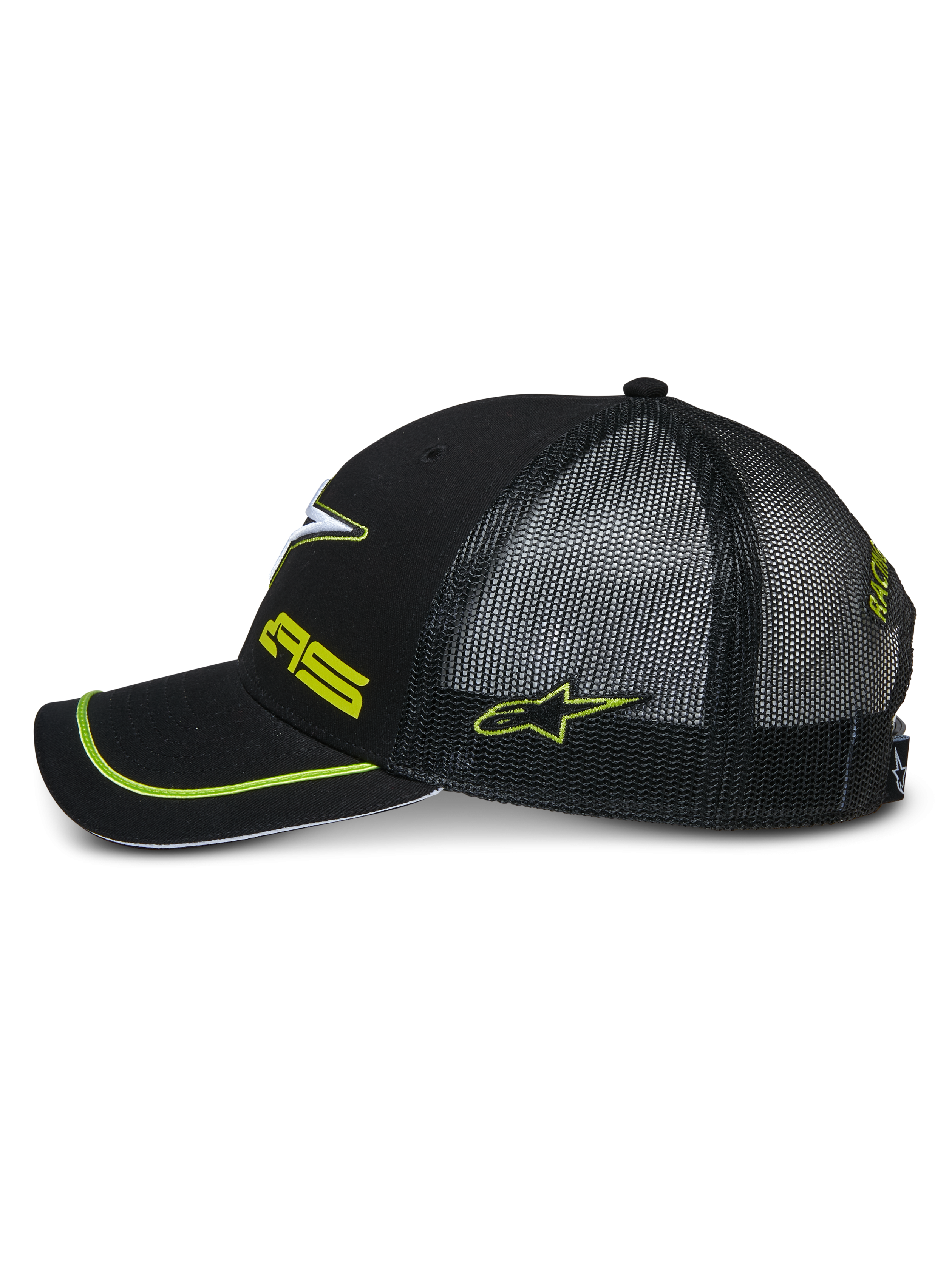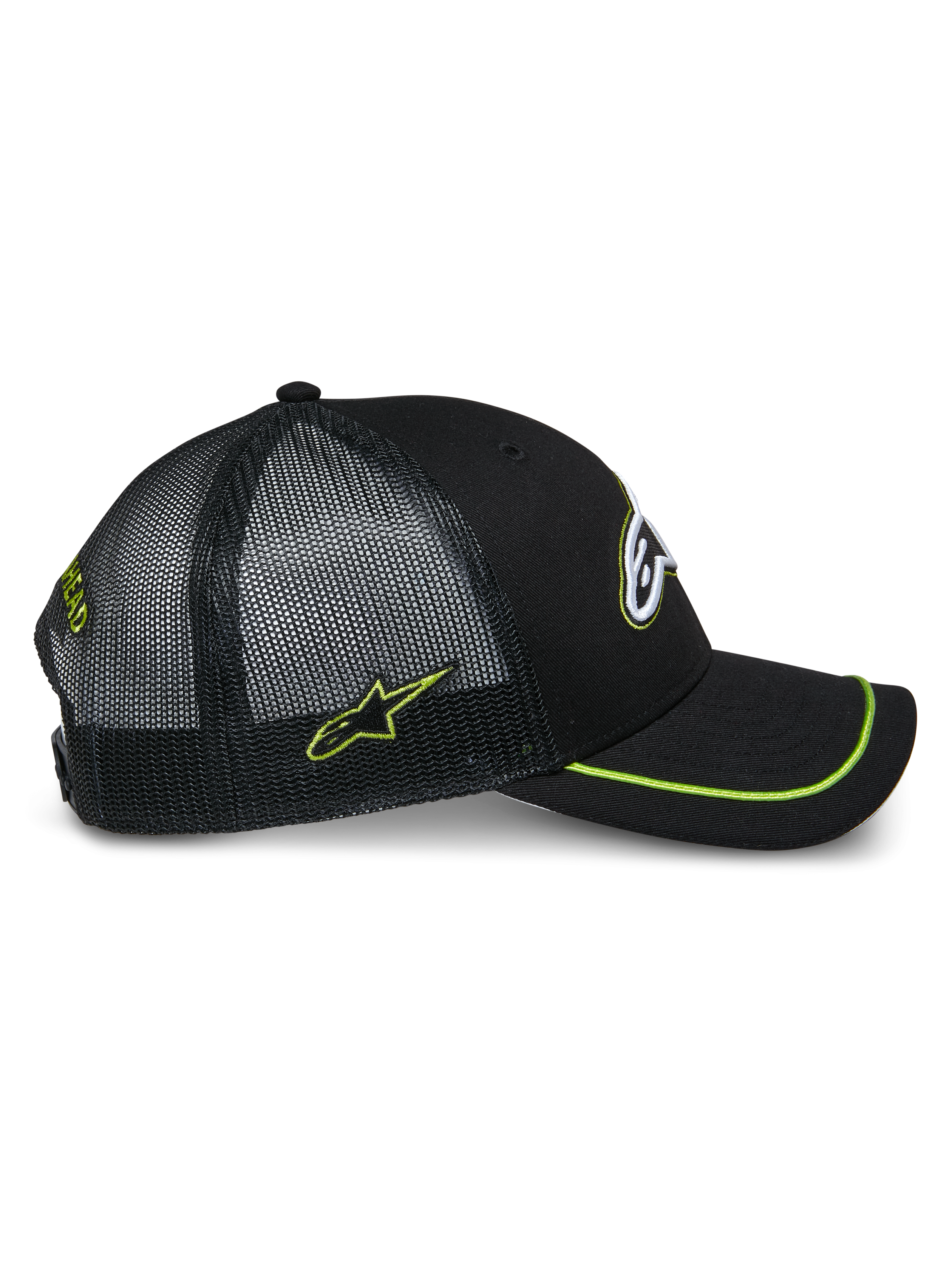 ? Curved bill with structured crown? Snap back? Twill main fabric? Front 3D emb with print logo. side and back flat embroidery logos. with sutache trim? Internal and back labeling