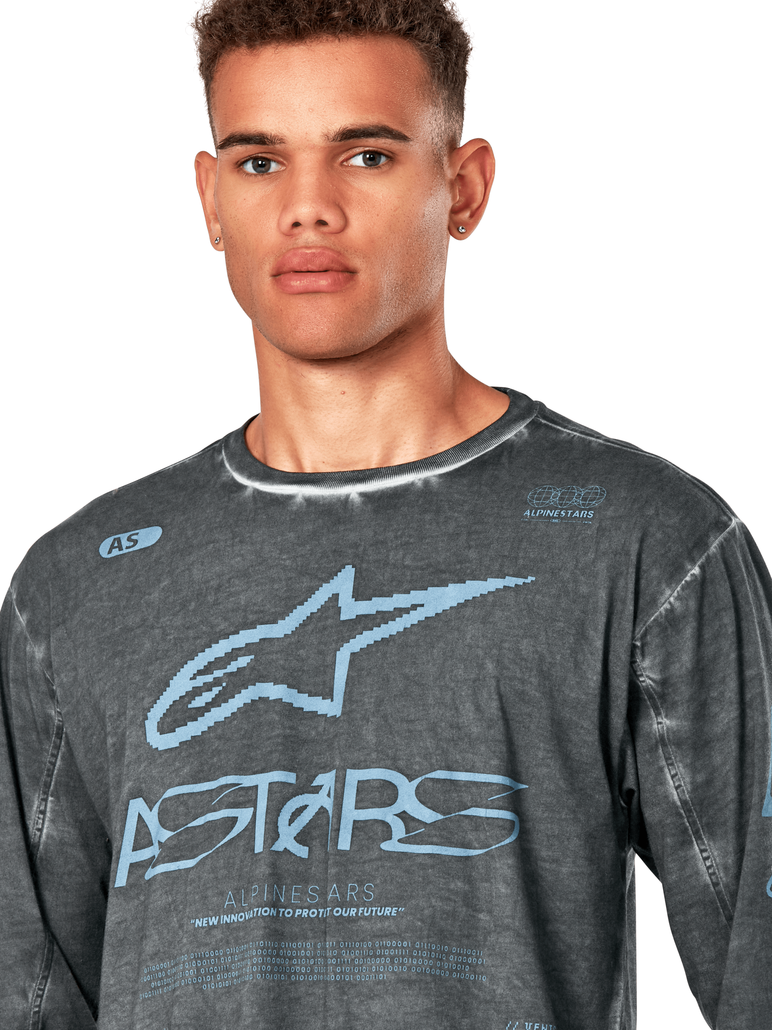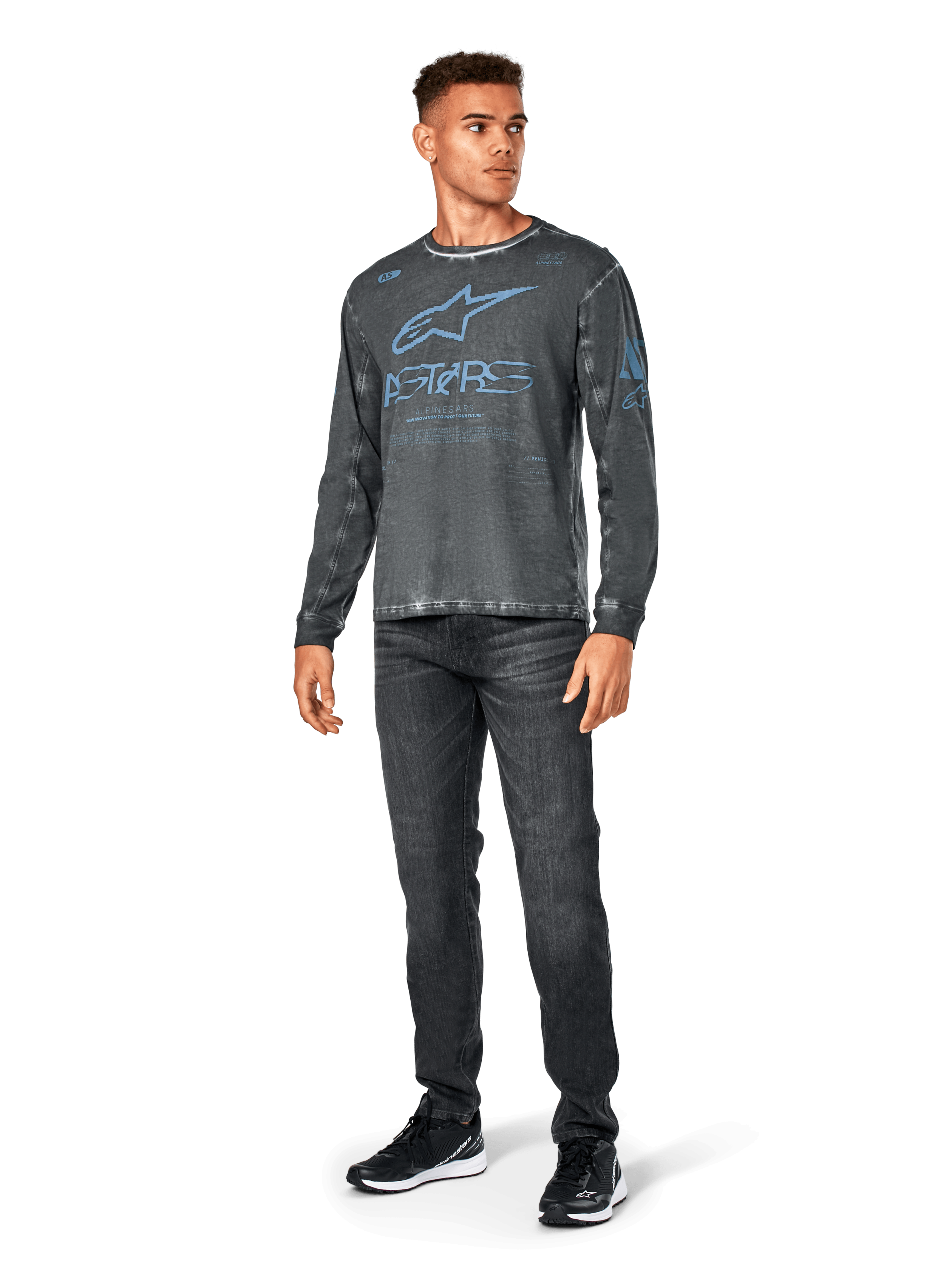 ? Garment dye. Chest and back mutli-logo graphic prints. Sleeve graphic prints