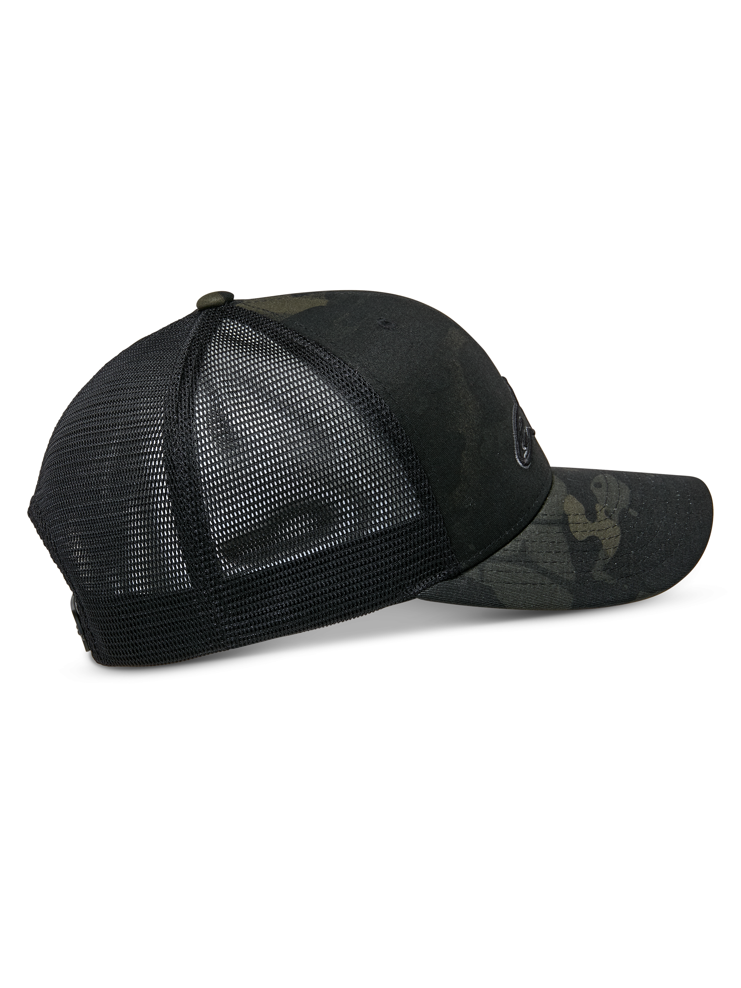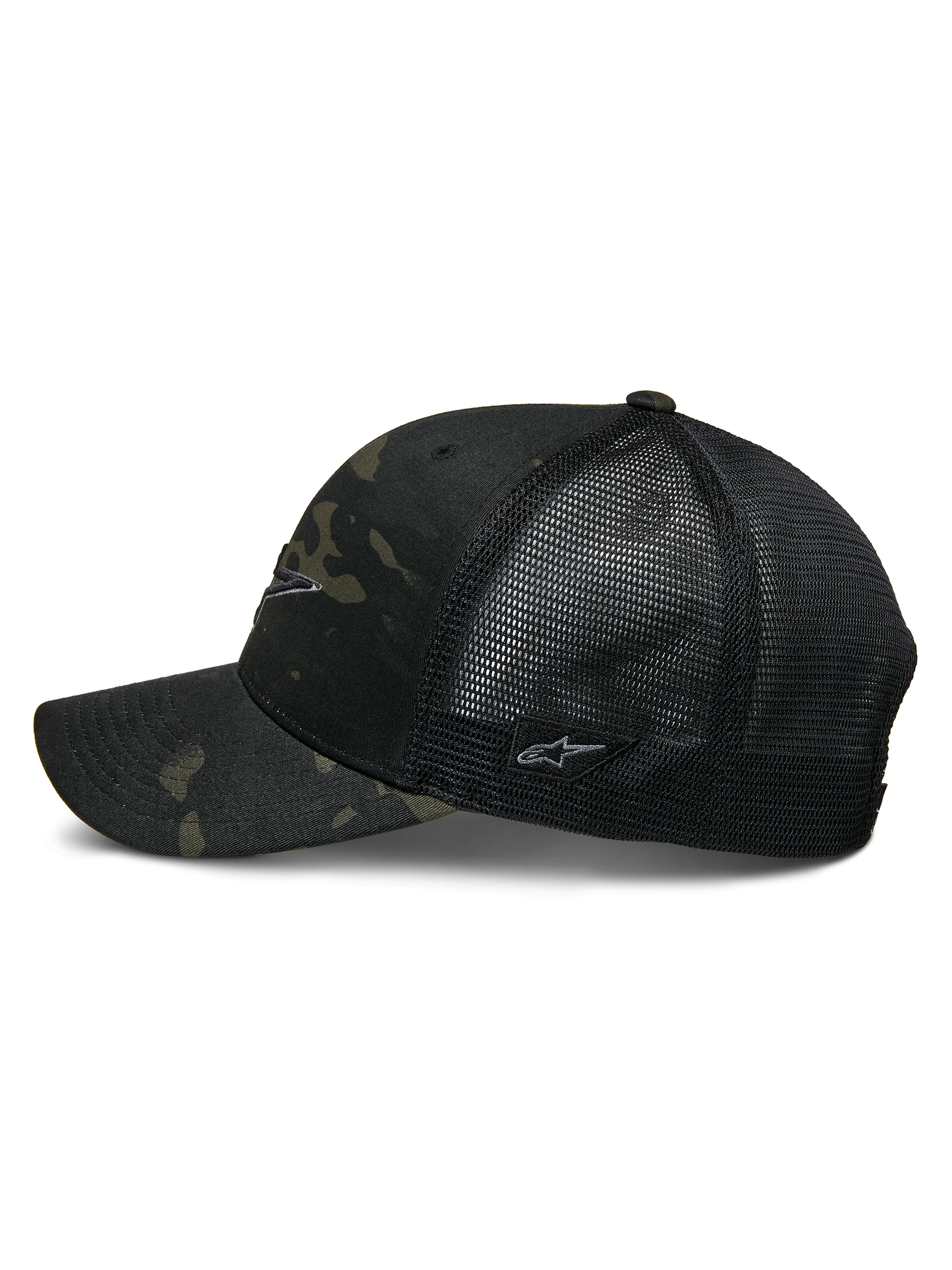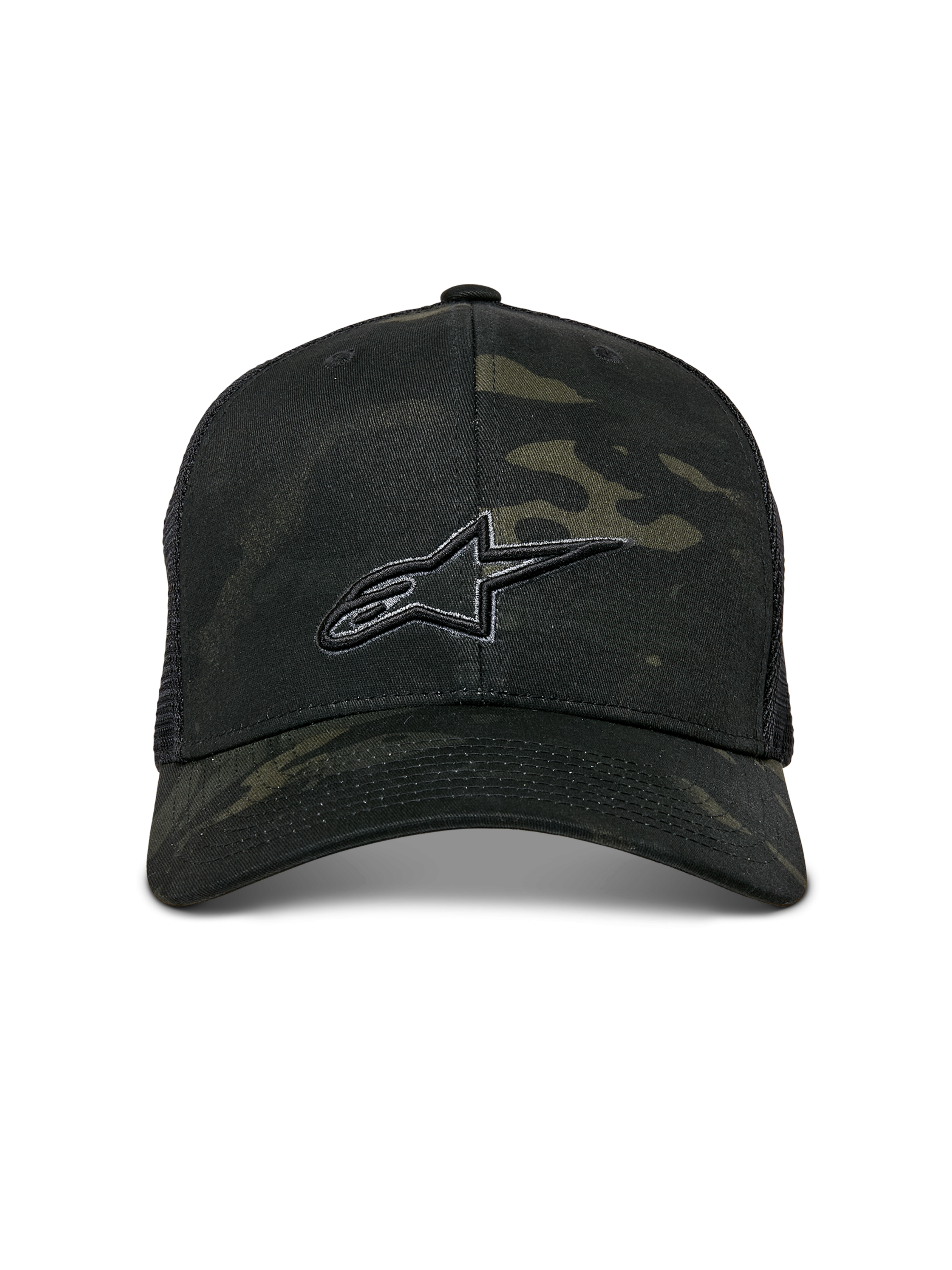 ? Curved bill with structured crown? Snap back? Camo twill main front. poly mesh back fabric? Front 3D embroidery Astars logo? Internal and back labeling? 98% Cotton. 2% Polyurethane