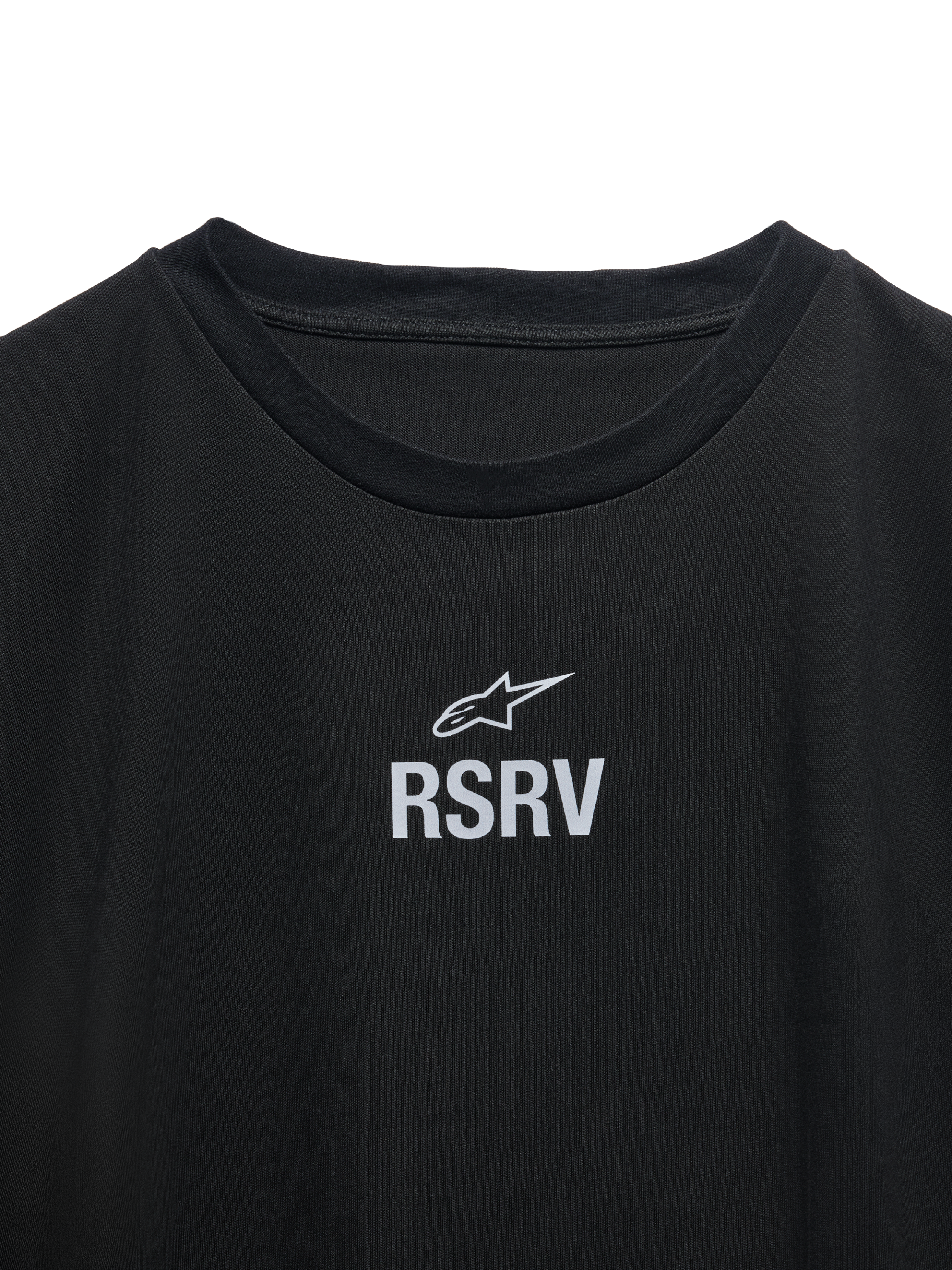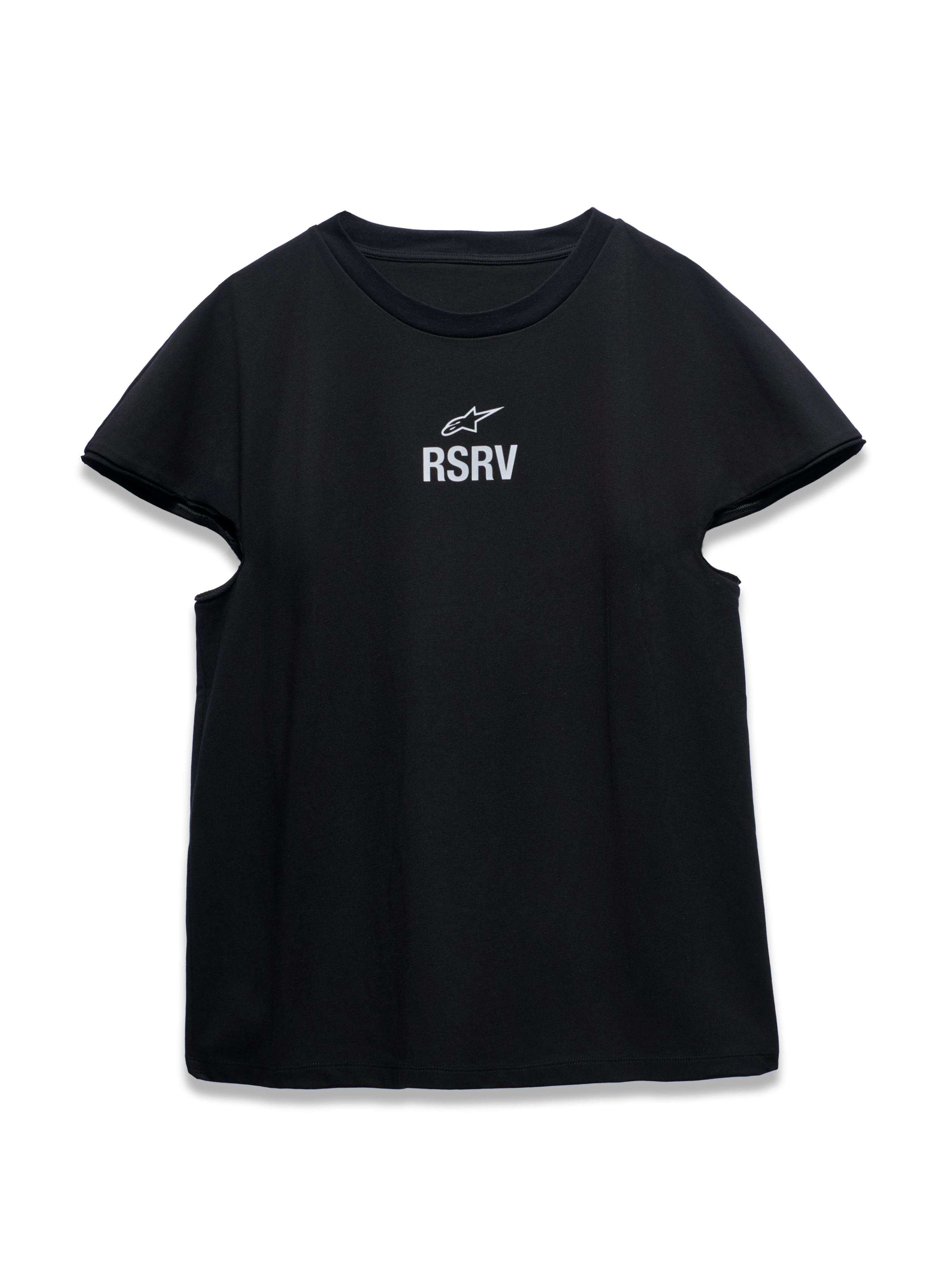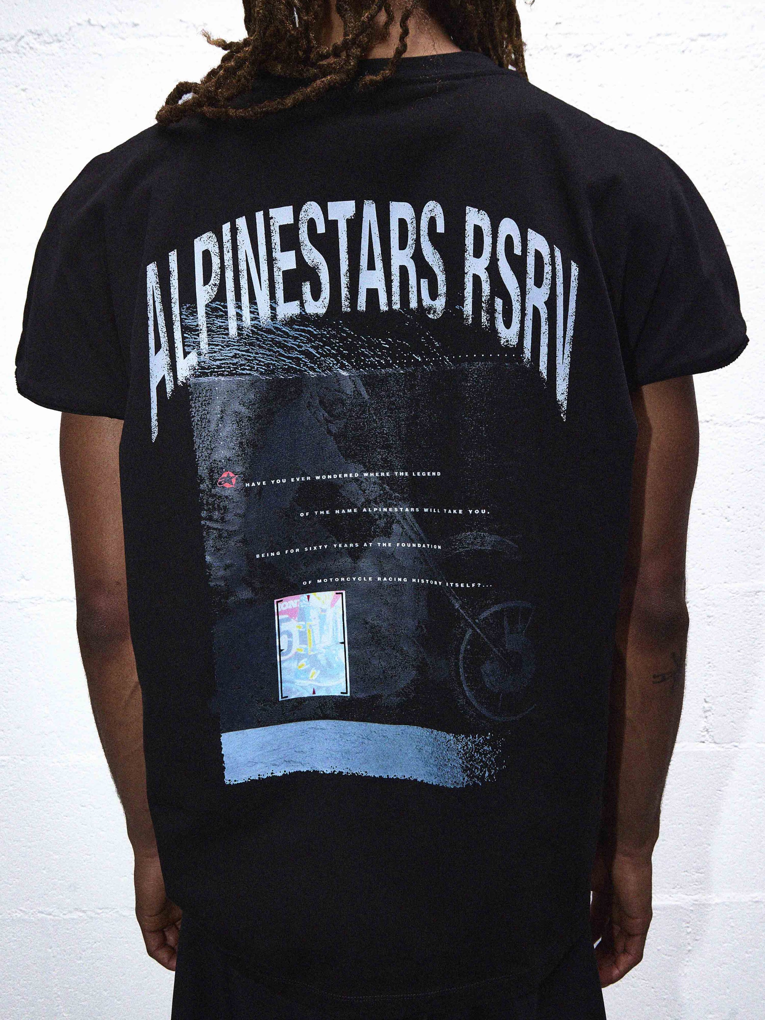 Raw energy. Boundless ambition. Perfection is practiced. but not yet mastered. Style is mandatory. These are the attributes of the rookie and the Rookie SS Tee are these. Casually quick. but not buttoned up. Flowing and free. The cropped. yokeless sleeves and symmetrical front/back construction give it a genderless ambiguity. The front features simple Astar and RSRV branding. while the back features a distressed print of a vintage 1980s Alpinestars magazine ad. The conflicting identities of the rookie are further explored in the available black. and more eccentric pink colorways.