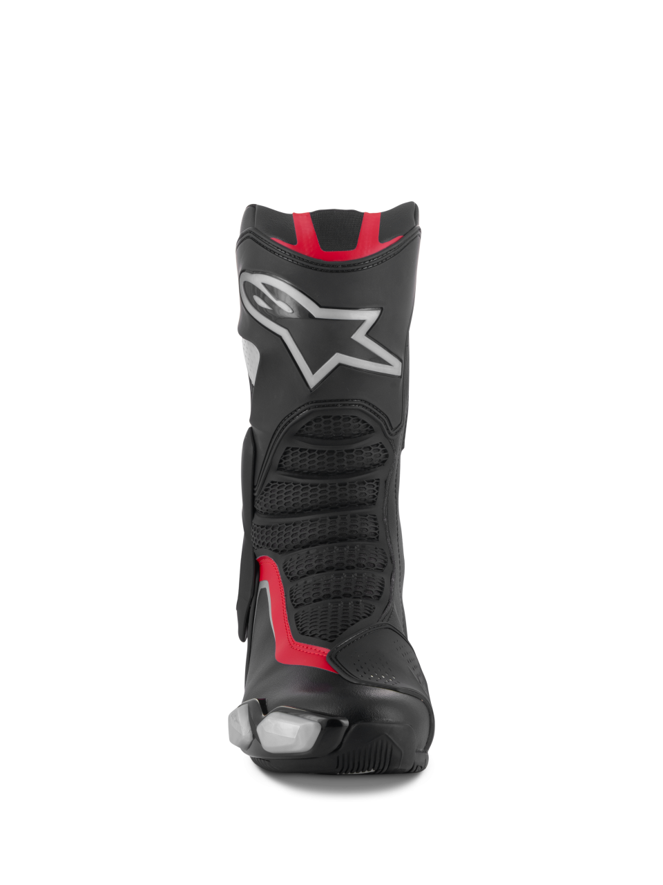 Almost every component of the Supertech R Vented Boot. Alpinestars definitive racing boot as worn by a roster of champions past and present. has undergone a rigorous program of upgrades to sharpen its performance features even further. Featuring extensive perforations throughout for maximum airflow. innovations derived using feedback from Alpinestars involvement in top flight racing include a newly redesigned front flex area. a redesigned rear bellow. a redesigned top gaitor. a new shifter and shin plate. a new shin slider and a new inner bootie. all of which enhance the comfort. protection and the performance of this boot to a new class-leading high.