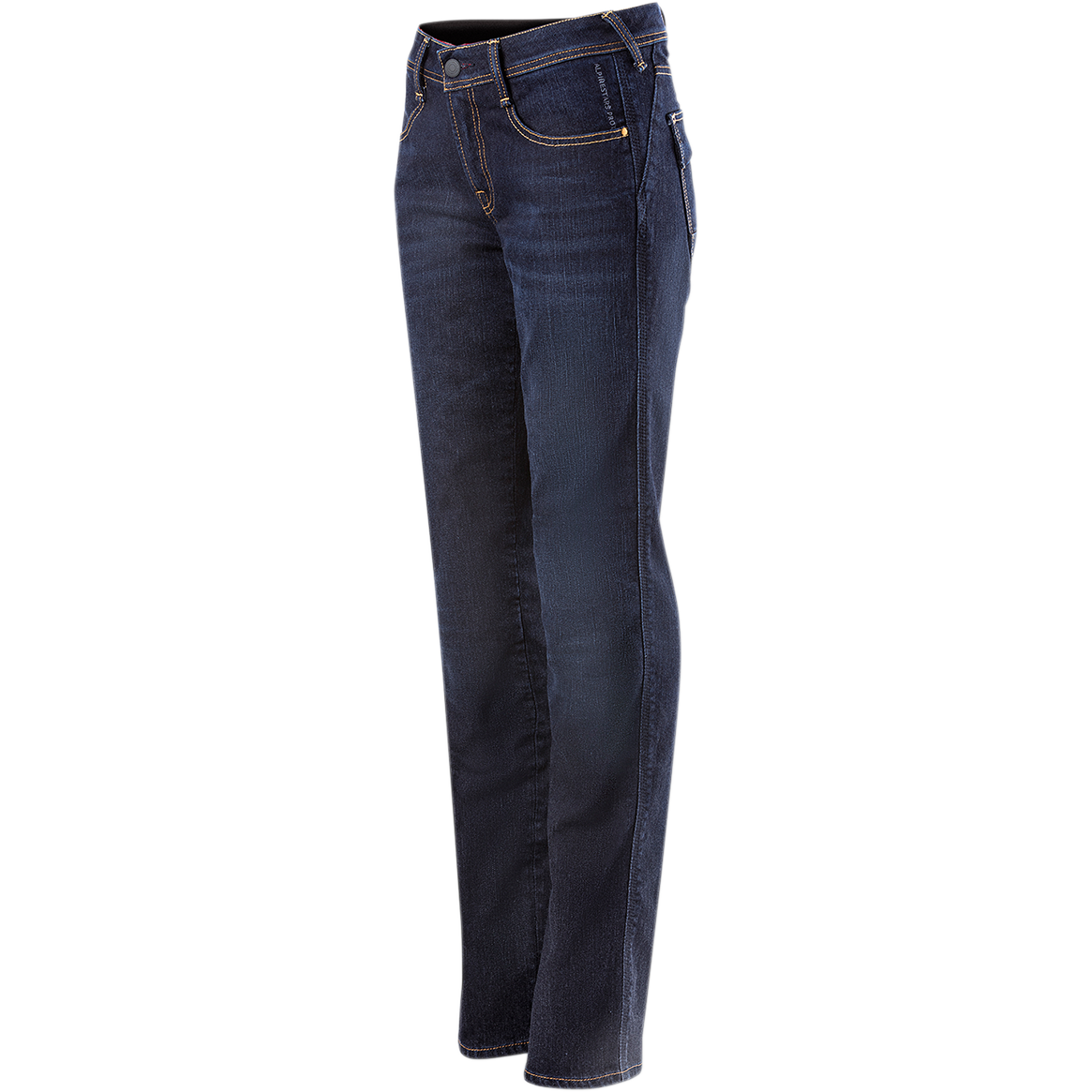 The Stella Angeles Denim Pant is a classic five-pocket sport and urban riding jean that fuses class-leading protection in a comfortable stretch denim women’s straight fit denim. Anatomically profiled for a fully optimized female fit. the Stella Angeles Denim Pant features a super-stretch denim Cordura with integrated moisture-wicking CoolThread technology and slim-profiled Bio-Flex knee armor for high levels of impact protection. Other neat design touches include a curved waistband for an improved fit and triple-stitched seams for enhanced durability and strength.